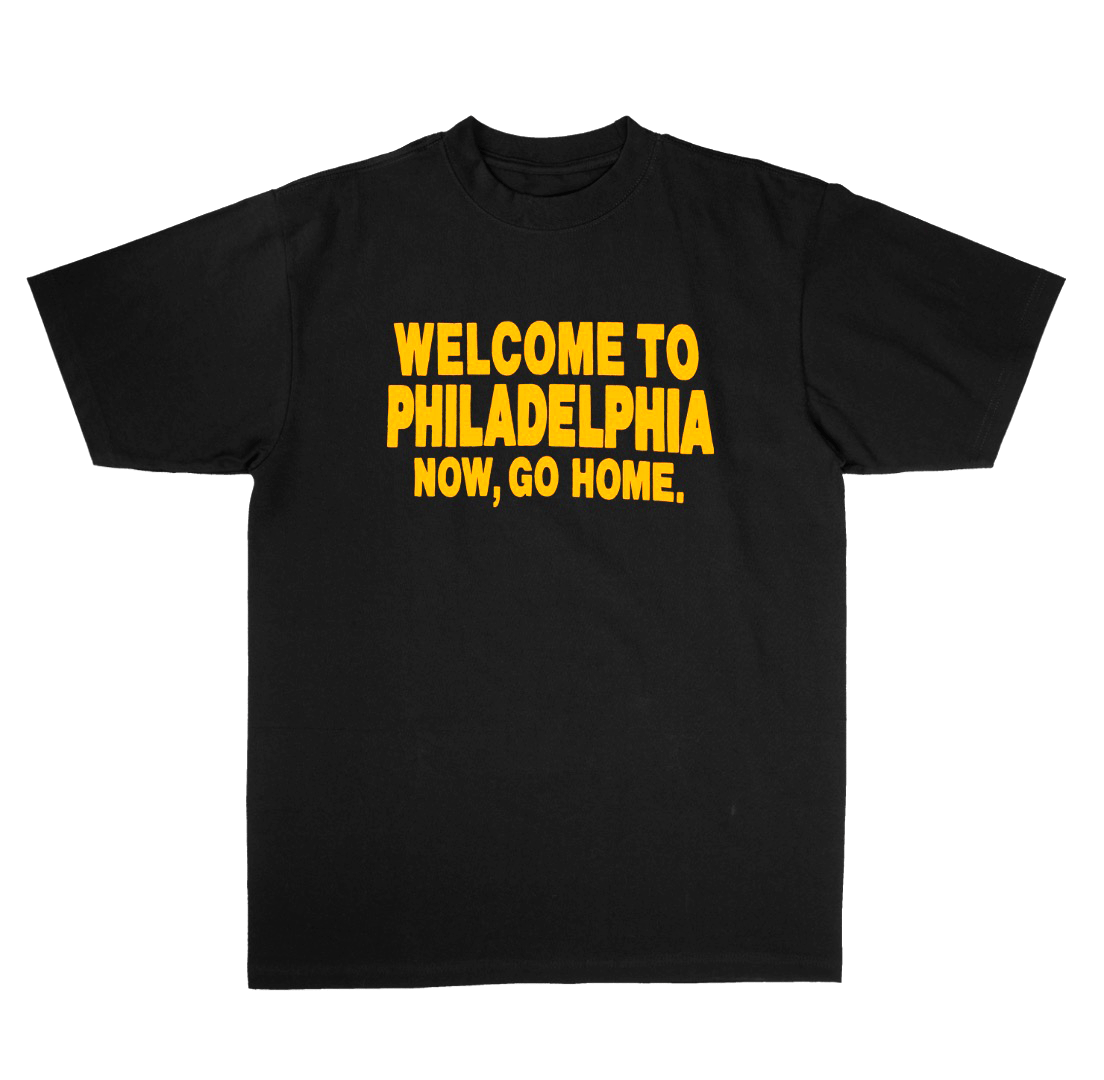Welcome to Philadelphia, Now Go Home Tee Shirt in black.